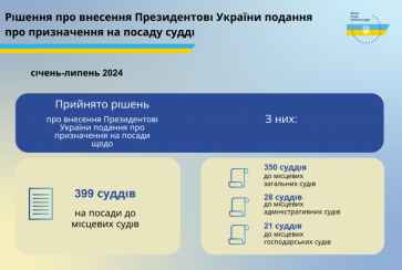 Упродовж семи місяців 2024 року Вища рада правосуддя ухвалила рішення про внесення Президентові України подання про призначення на посади 399 суддів до місцевих судів, з них: